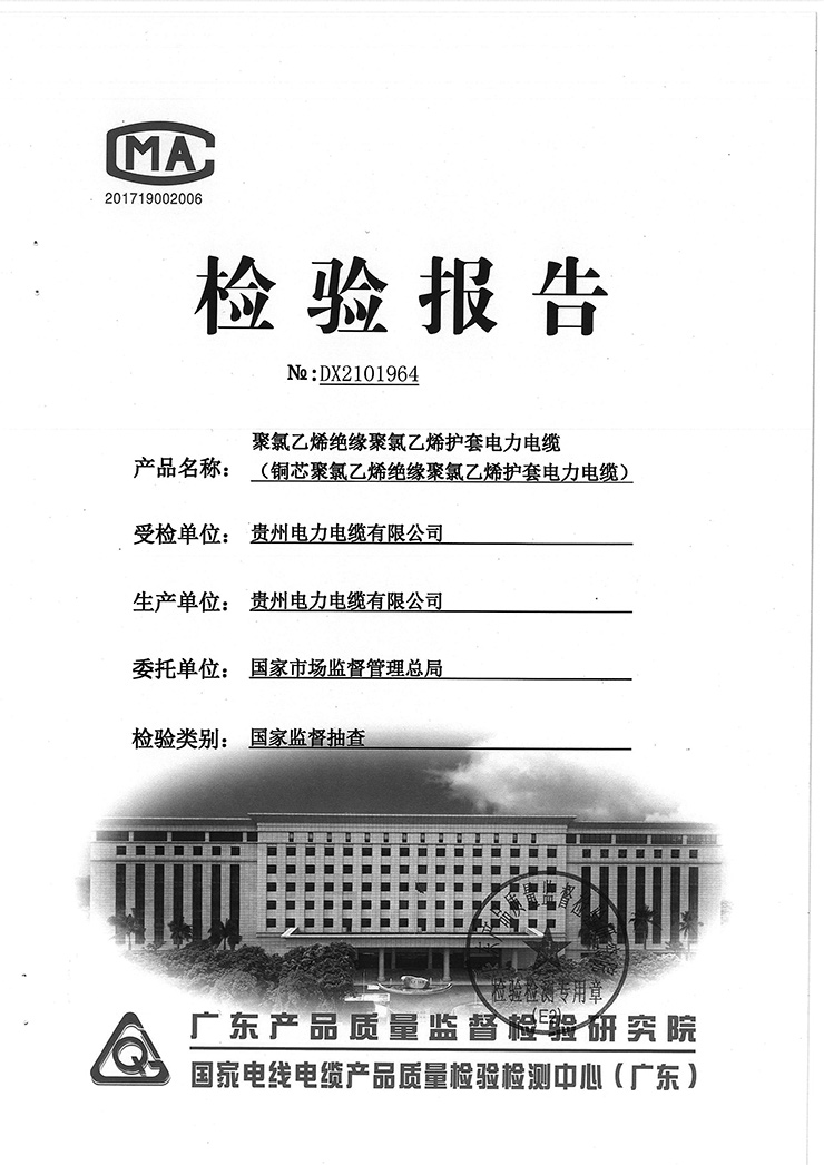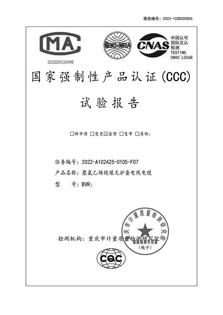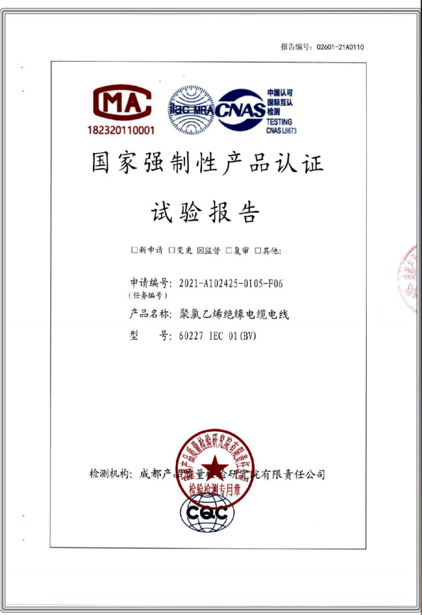 聚氯乙烯乙烯絕緣電纜電線 國家強制性產(chǎn)品試驗認(rèn)證報告